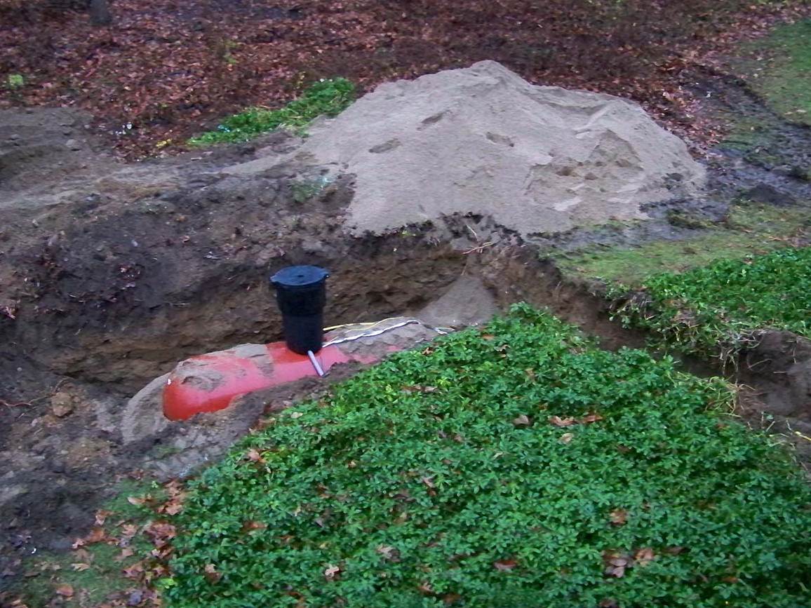 is underground and secured in 3 locations at each 4x4 by 4 foot long 1/2” Dia. rebar